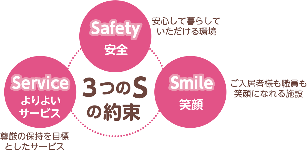ご入居者様の尊厳・安心・安全を守り、いつまでも笑顔で暮らしていただけるように心がけています。